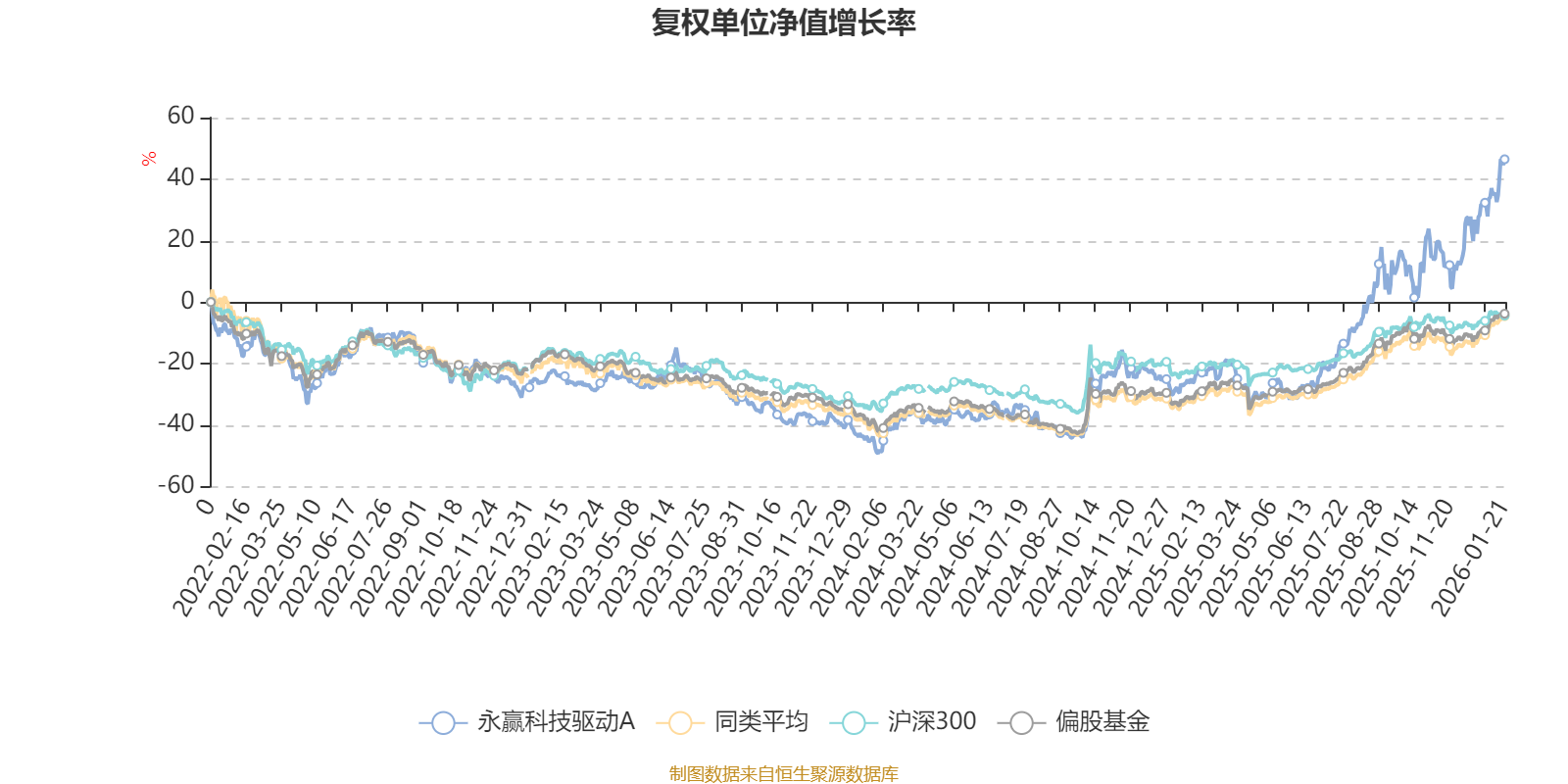 截至1月21日,永赢科技驱动A近三个月复权单位净值增长率为29.90%,位于同类可比基金3/265;近半年复权单位净值增长率为70.60%,位于同类可比基金3/265;近一年复权单位净值增长率为96.00%,位于同类可比基金4/265;近三年复权单位净值增长率为93.19%,位于同类可比基金5/256。