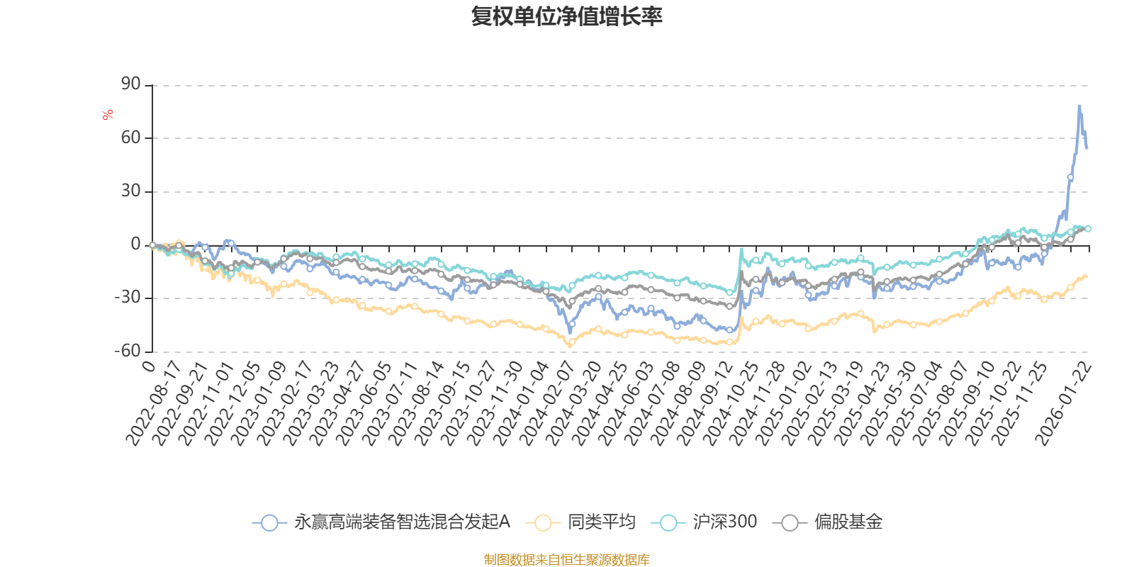 截至1月21日,永赢高端装备智选混合发起A近三个月复权单位净值增长率为73.09%,位于同类可比基金1/100;近半年复权单位净值增长率为91.32%,位于同类可比基金1/100;近一年复权单位净值增长率为108.46%,位于同类可比基金1/92;近三年复权单位净值增长率为74.05%,位于同类可比基金1/68。