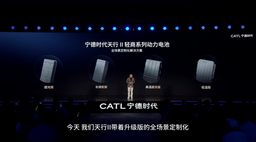 针对末端物流场景,宁德时代推出天行II轻商高温超充版电池。该电池支持峰值4C超充,最快18分钟即可补能60%,实现“充电1分钟续航10公里”。同时,该电池独有的“高温副反应自抑制”技术,不仅帮助整车精简热管理设计,还能将用车能耗再降5%。