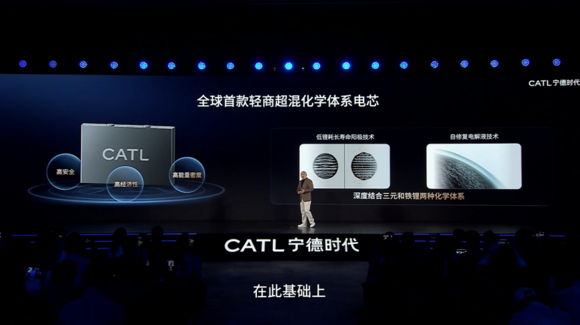 宁德时代表示,超混化学体系电芯实现了高安全、高能量密度与经济性的平衡,搭载该电池的整车可实现800公里超长实况续航。此外,电池还应用了自补锂正极材料与自修复电解液技术,进一步延长使用寿命。