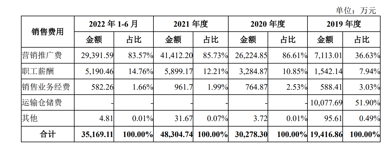 公司在营销上也舍得投入。早前认养一头牛计划登陆A股,招股书显示,2022年上半年,公司销售费用达到3.5亿元。2021年全年,公司销售费用4.8亿元,2022年上半年销售费用已经占到了2021年全年的70%以上。