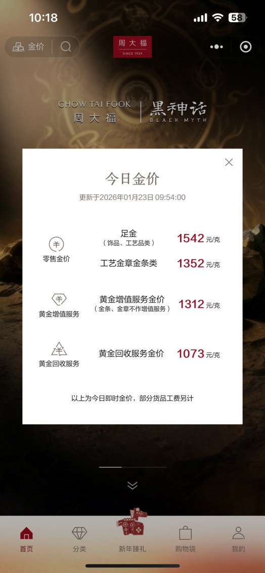 周大福1月23日金价。网络截图