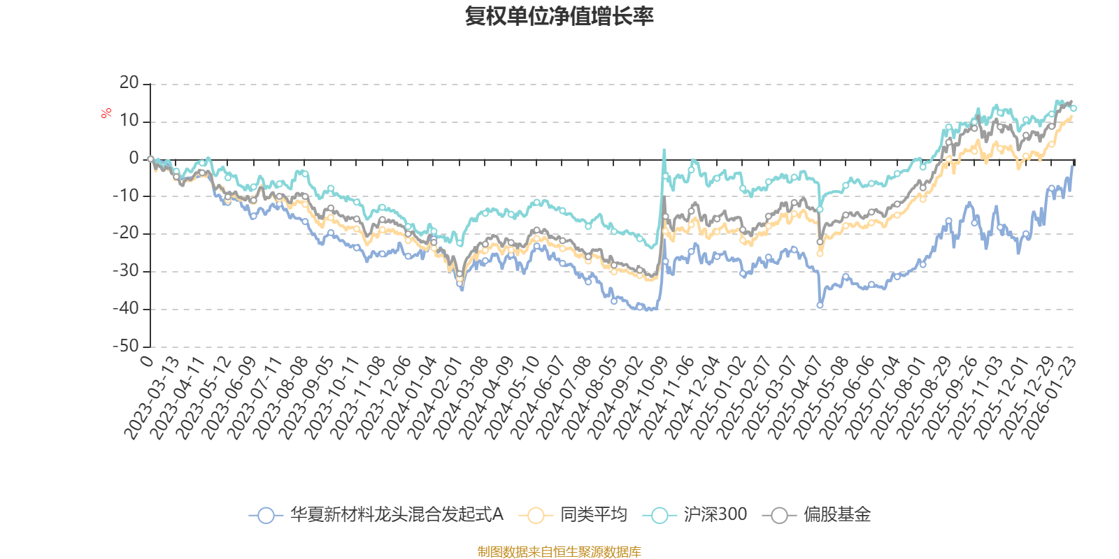 截至1月22日,华夏新材料龙头混合发起式A近三个月复权单位净值增长率为21.81%,位于同类可比基金58/689;近半年复权单位净值增长率为38.97%,位于同类可比基金139/689;近一年复权单位净值增长率为34.76%,位于同类可比基金366/673。