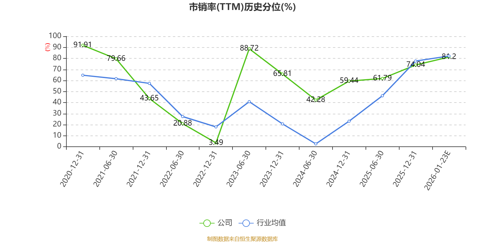 以本次披露业绩预告均值计算,公司近年市盈率(TTM)图如下所示:
