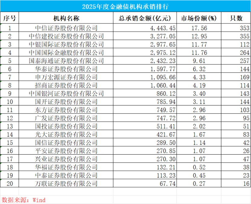回望刚刚结束的2025年,债券一级发行市场,各家机构的成绩单已经出炉。