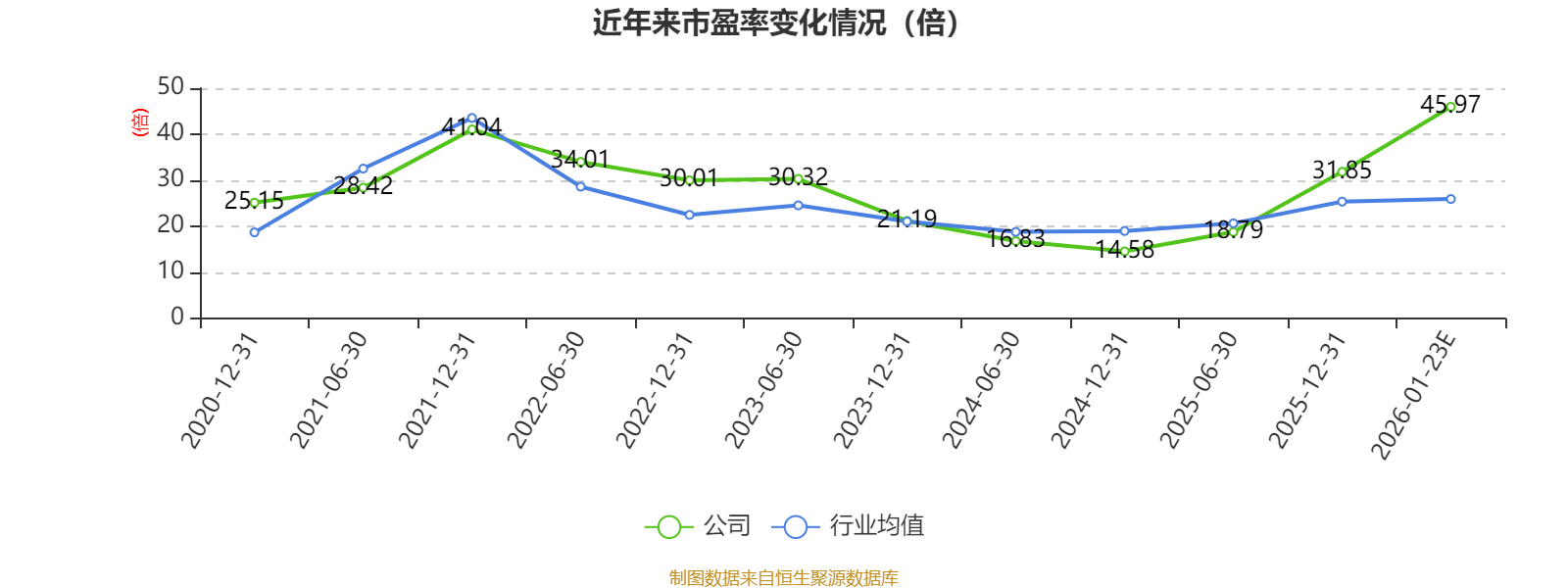 以本次披露业绩预告均值计算,公司近年市盈率(TTM)图如下所示: