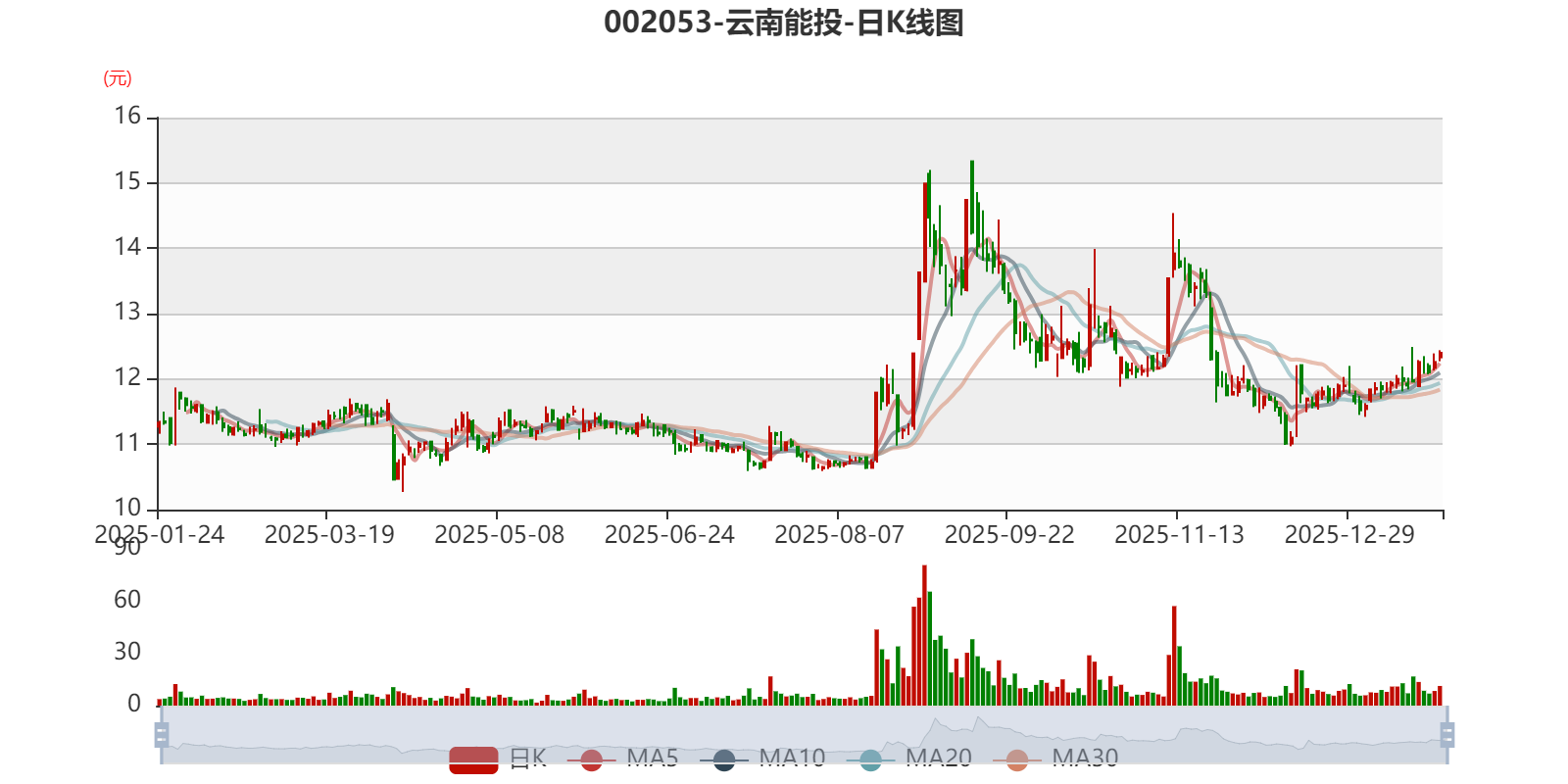 据公告,公司业绩变动主要受新能源板块影响。一是据云南省气候中心统计,2025年云南省平均降水量为1961年以来第二高的年份,降水增加导致来风减少且低风速时段增多,2025年度属于云南风电较为极端的“小风年”,导致公司新能源装机规模虽同比增加,但发电量由上一年度的38.14亿度减至33.56亿度;二是随着省内新能源装机规模快速扩张,日间高峰缺电与低谷弃电并存的矛盾凸显,弃风弃光率同比增加;三是市场化交易电价下行,叠加新增项目陆续转固,折旧等固定成本相应增加。