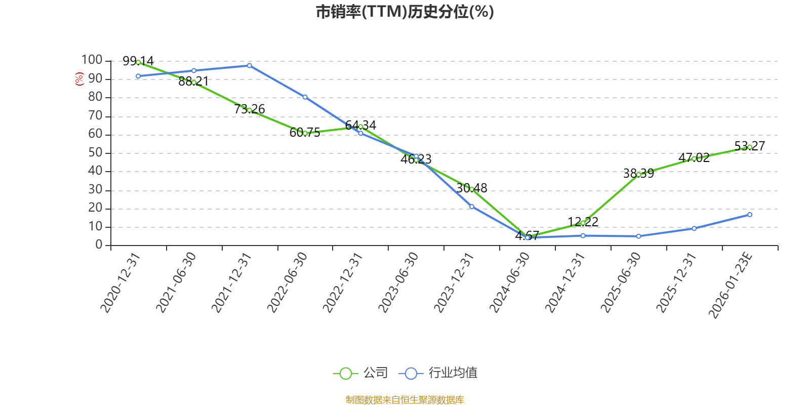 中证智能财讯赛伍技术(603212)1月23日晚间披露2025年度业绩预告,预计2025年归母净利润亏损2.3亿元至2.76亿元,上年同期亏损2.85亿元;扣非净利润亏损2.4亿元至2.86亿元,上年同期亏损2.86亿元。以最新收盘价计算,市净率(LF)约2.78倍,市销率(TTM)约2.6倍。