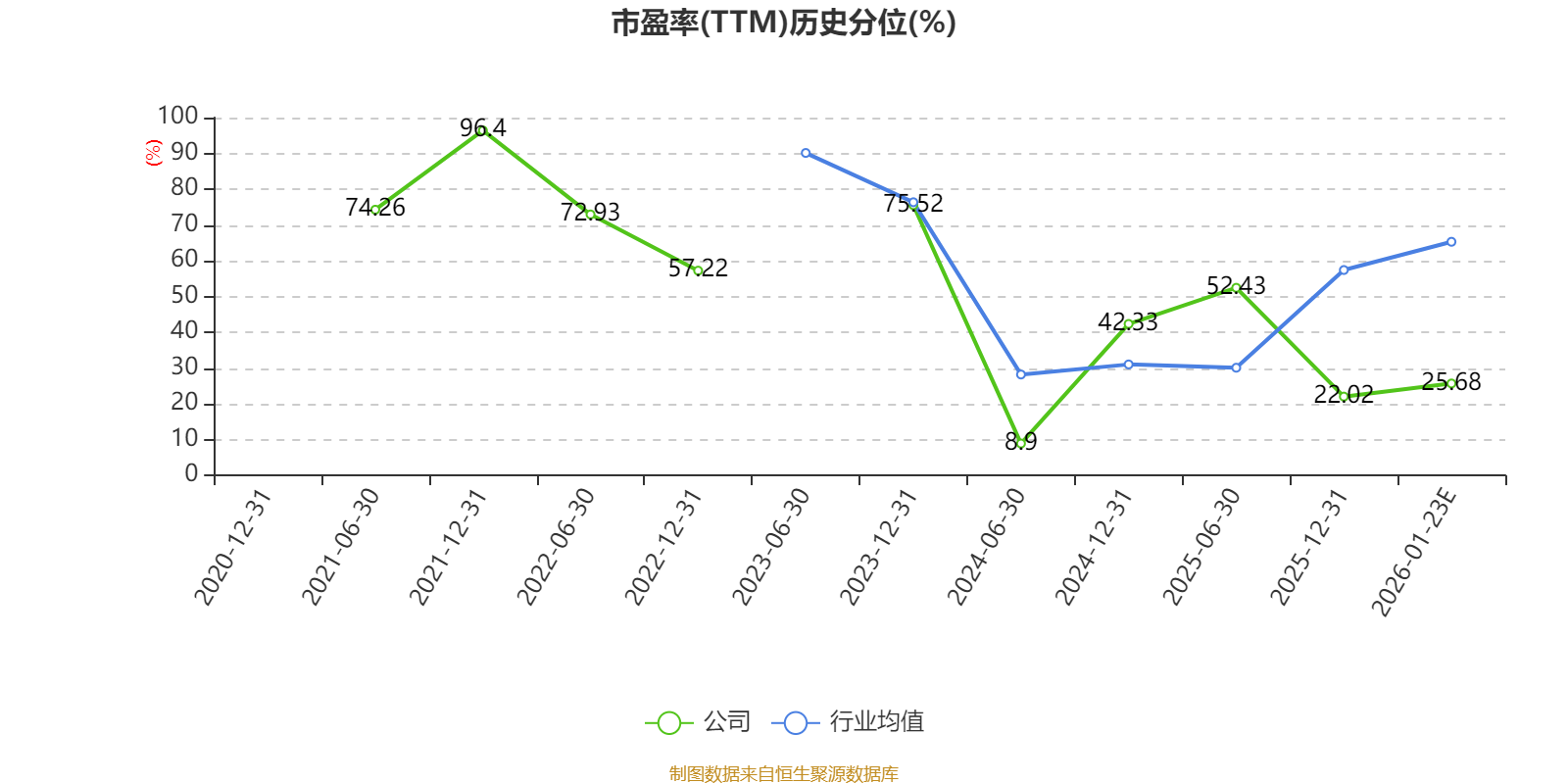以本次披露业绩预告均值计算,公司近年市盈率(TTM)图如下所示: