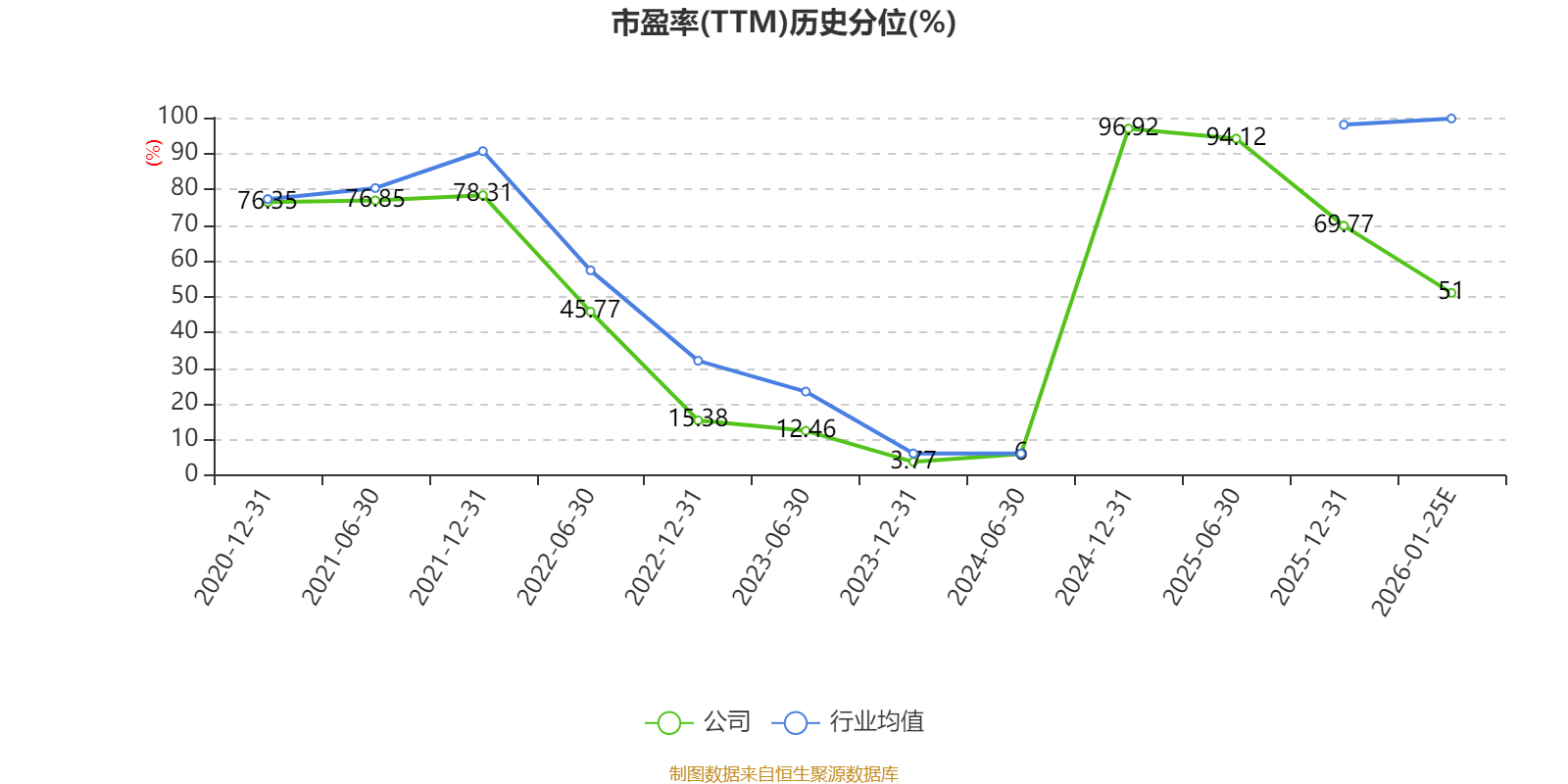 以本次披露业绩预告均值计算,公司近年市盈率(TTM)图如下所示: