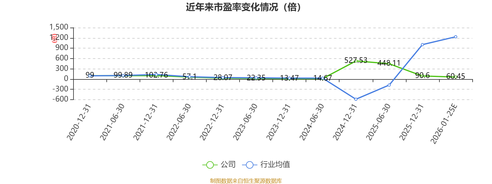市盈率、市净率为负时,不显示当期分位数,会导致折线图中断。