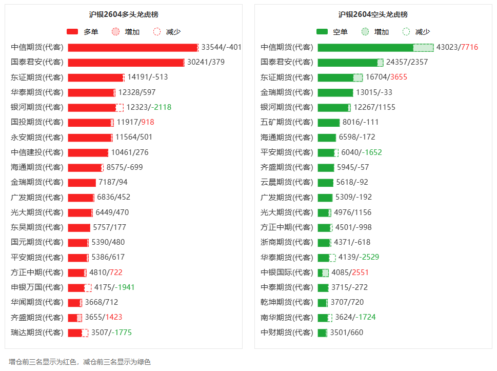 沪银龙虎榜 | 主力合约增仓上行 多方呈退场态势 空方呈进场态势