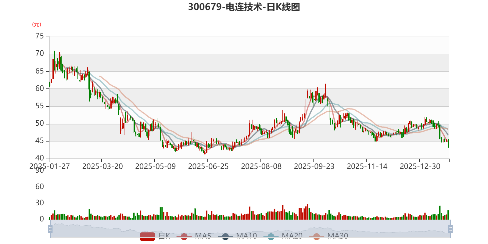中证智能财讯电连技术(300679)1月26日晚间披露2025年度业绩预告,预计2025年归母净利润1.83亿元至2.73亿元,同比下降56.13%-70.59%;扣非净利润预计1.81亿元-2.71亿元,同比下降55.7%-70.41%。以1月26日收盘价计算,电连技术目前市盈率(TTM)约为67.26倍-100.33倍,市净率(LF)约3.65倍,市销率(TTM)约3.42倍。