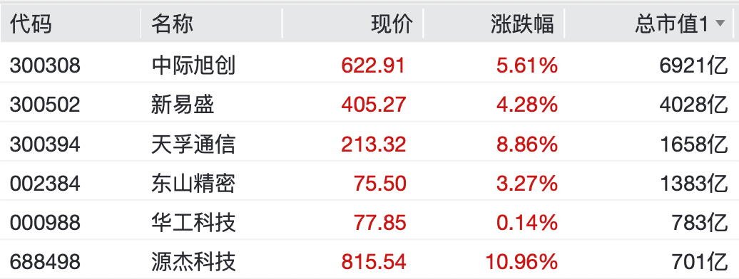 CPO概念股强势反弹,“易中天”大涨,中际旭创涨超5%,新易盛涨超4%,天孚通信大涨8%。