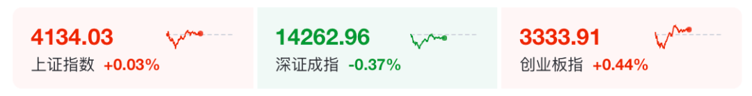 1月27日上午,A股三大股指涨跌不一。截至午间收盘,沪指报4134.03点,微涨0.03%;深证成指走弱,跌0.37%;创业板指涨0.44%。