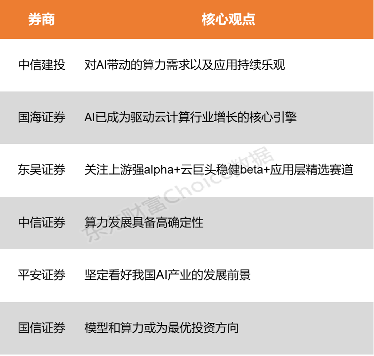 中信建投:对AI带动的算力需求以及应用持续乐观