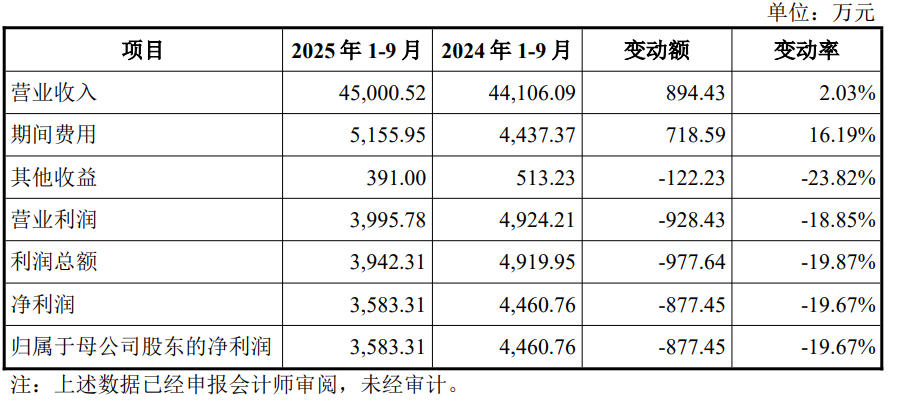 2025年前三季度净利下滑近两成