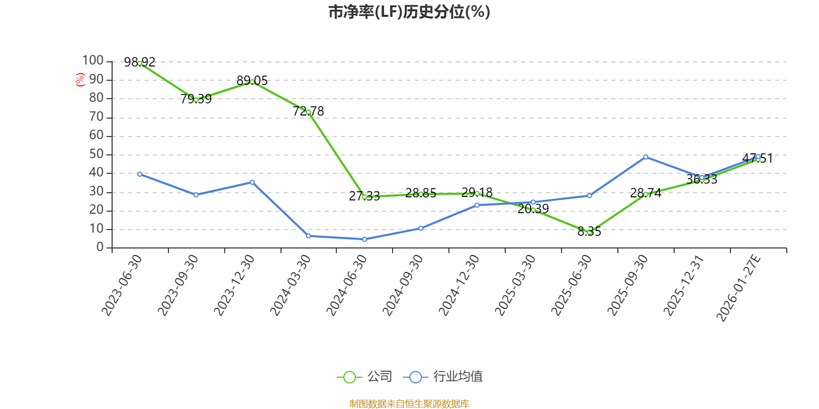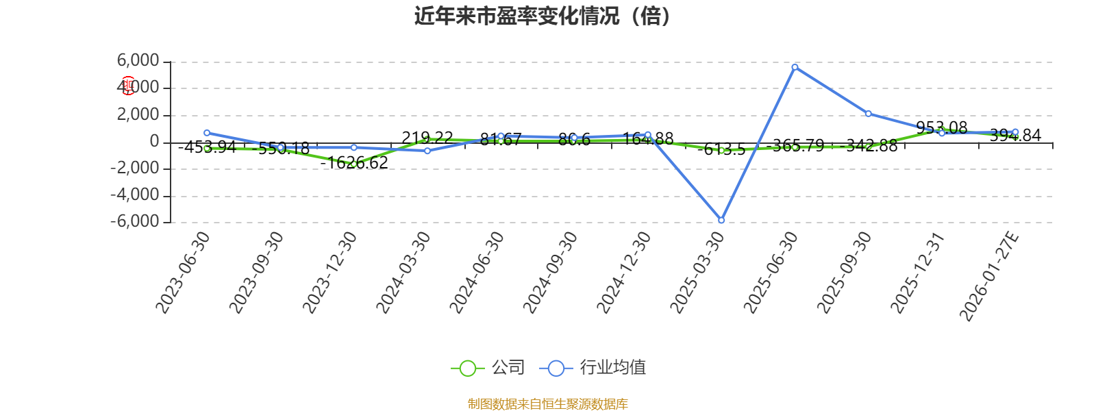 市盈率、市净率为负时,不显示当期分位数,会导致折线图中断。