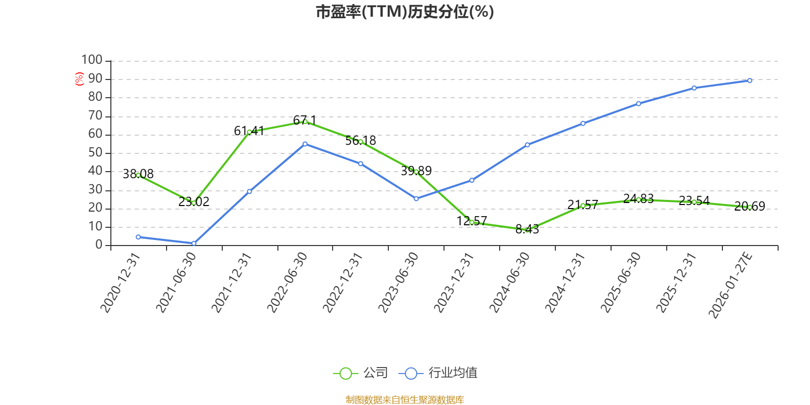 以本次披露业绩预告均值计算,公司近年市盈率(TTM)图如下所示: