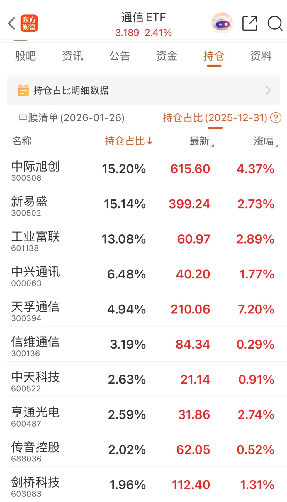 通信ETF(515880)跟踪的中证全指通信设备指数中,光模块相关成分股权重占比极高,深度覆盖CPO产业链核心环节。持仓方面,前三大权重股(新易盛、中际旭创、工业富联)占比51.71%。2025年全年,其收益率达126.13%,居全市场ETF第一。