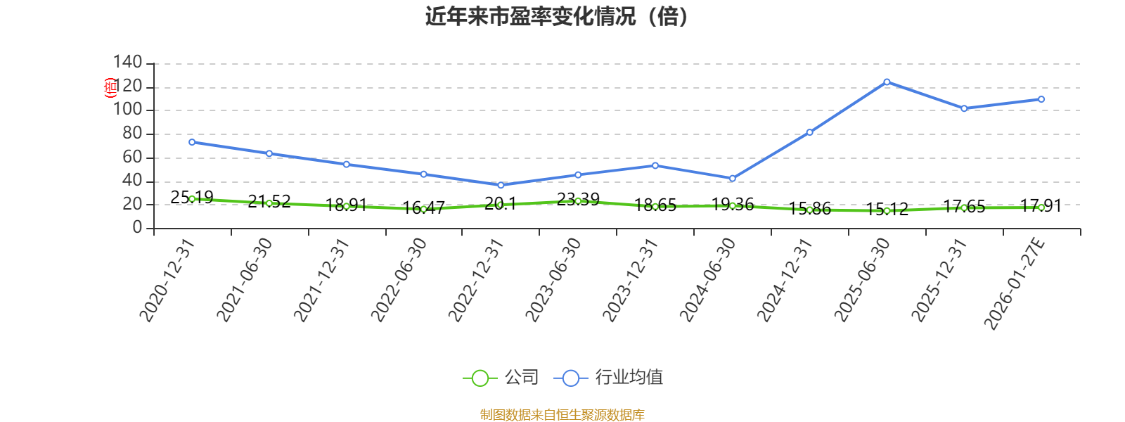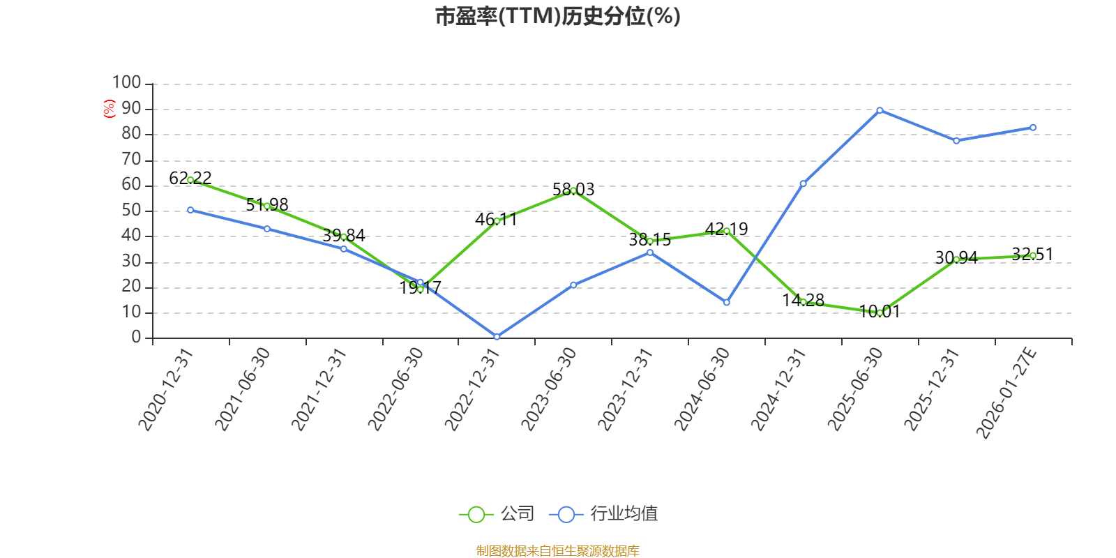 以本次披露业绩预告均值计算,公司近年市盈率(TTM)图如下所示: