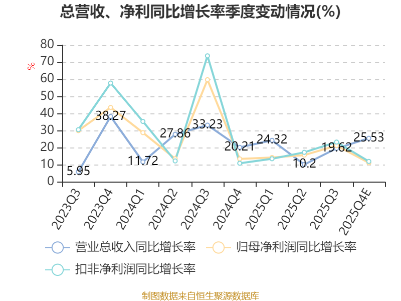 据公告,公司业绩变动原因为, 1、2025年度,公司的经营情况良好,生产紧张有序,营业收入同比增长。公司的经营情况符合预期,预计营业收入约60.5亿元,同比上升约19.5%,其中内销收入约41.5亿元,外销收入约19.0亿元。2、2025年度,在行业景气度回暖的情况下,公司不断提升运营效率,加大销售力度,盈利能力持续提升,归属于上市公司股东的净利润同比增长,预计归属于上市公司股东的净利润为67000.00万元至74200.00万元,同比上升10.22%至22.06%。3、2025年度,预计非经常性损益对公司净利润的影响金额约为1260万元,较去年同期1620万元减少约360万元,主要原因是公司2025年度收到的政府补助较去年有所减少所致。