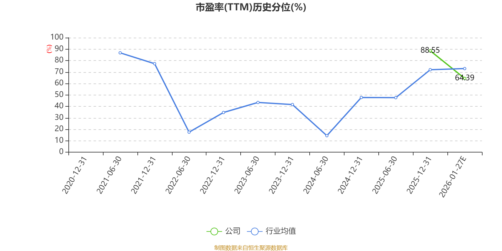以本次披露业绩预告均值计算,公司近年市盈率(TTM)图如下所示: