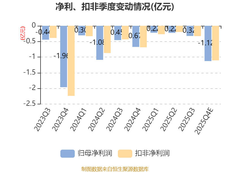 中证智能财讯蓝丰生化(002513)1月27日晚间披露2025年度业绩预告,预计2025年归母净利润亏损1.5亿元至2.3亿元,上年同期亏损2.53亿元;扣非净利润亏损1.5亿元至2.3亿元,上年同期亏损2.32亿元;基本每股收益-0.4元/股至-0.61元/股。以最新收盘价计算,市净率(LF)约-197.23倍,市销率(TTM)约1.27倍。