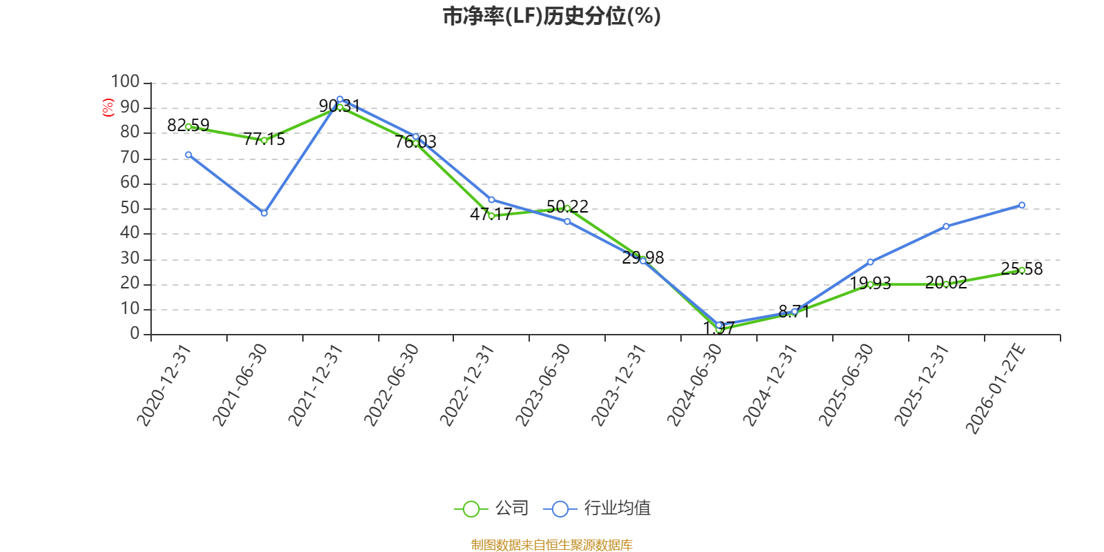 市盈率、市净率为负时,不显示当期分位数,会导致折线图中断。