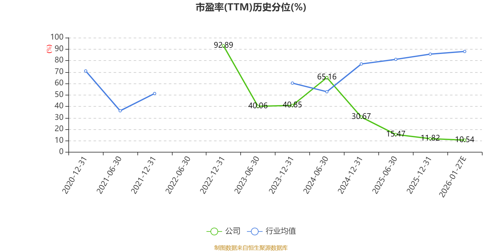 市盈率、市净率为负时,不显示当期分位数,会导致折线图中断。