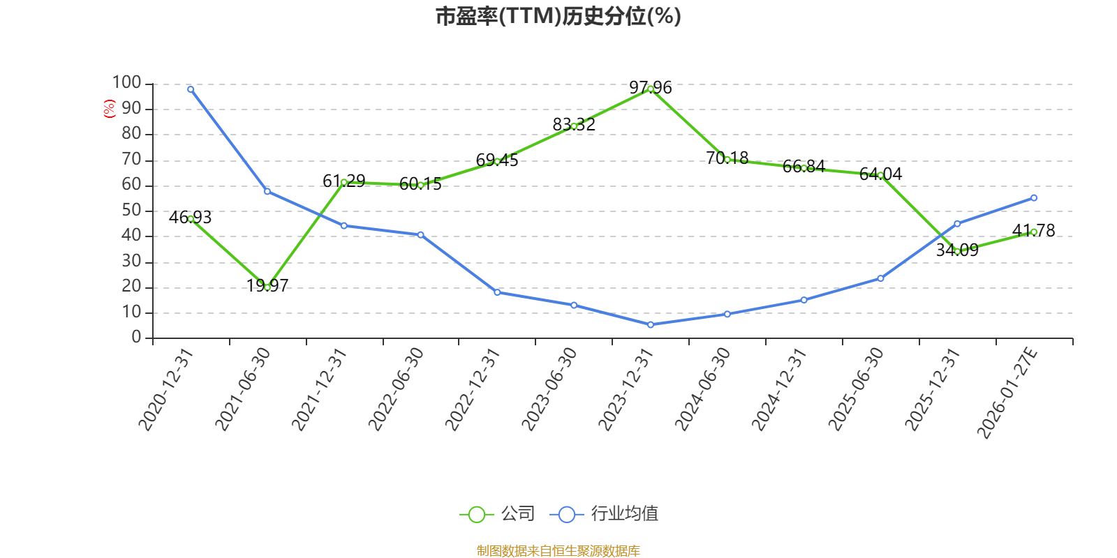 以本次披露业绩预告均值计算,公司近年市盈率(TTM)图如下所示: