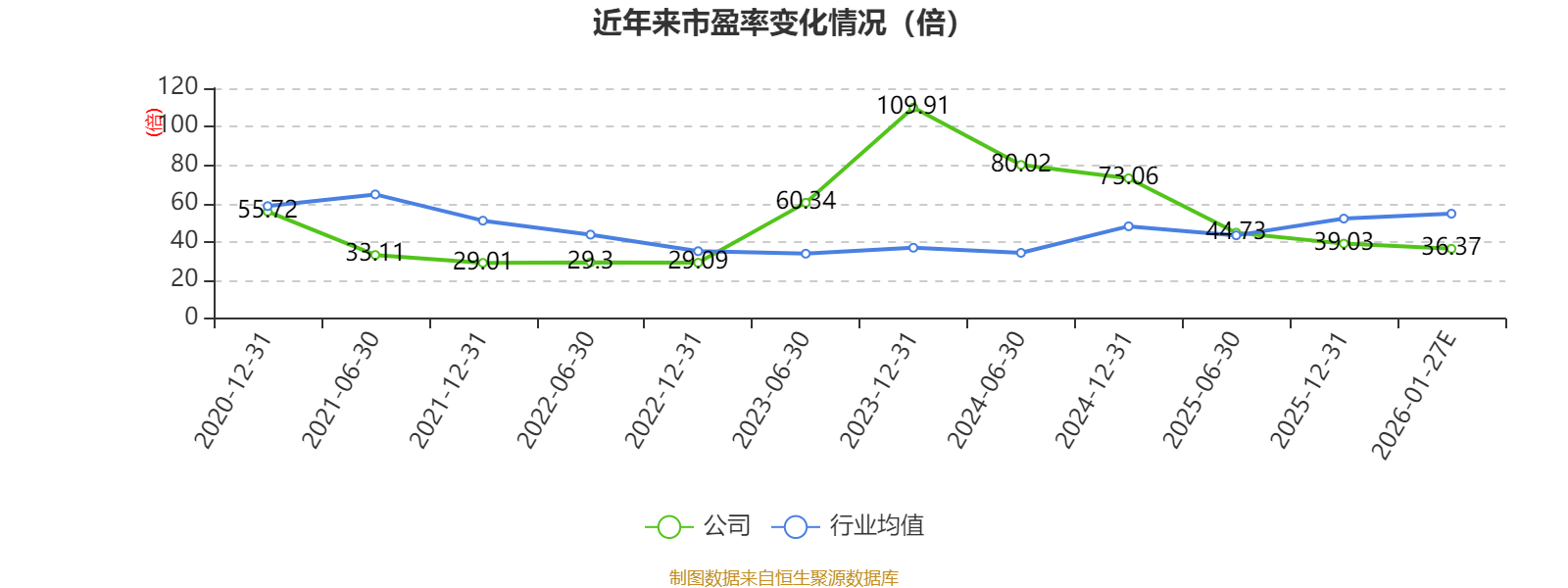 以本次披露业绩预告均值计算,公司近年市盈率(TTM)图如下所示: