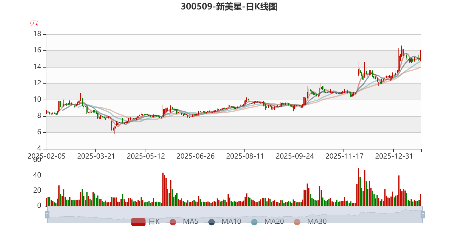 中证智能财讯新美星(300509)1月27日晚间披露2025年度业绩预告,预计2025年归母净利润1.18亿元至1.38亿元,同比增长160.76%-204.96%;扣非净利润预计1.14亿元至1.34亿元,同比增长174.55%-222.71%。以1月27日收盘价计算,新美星目前市盈率(TTM)约为33.53倍-39.21倍,市净率(LF)约7.49倍,市销率(TTM)约3.87倍。