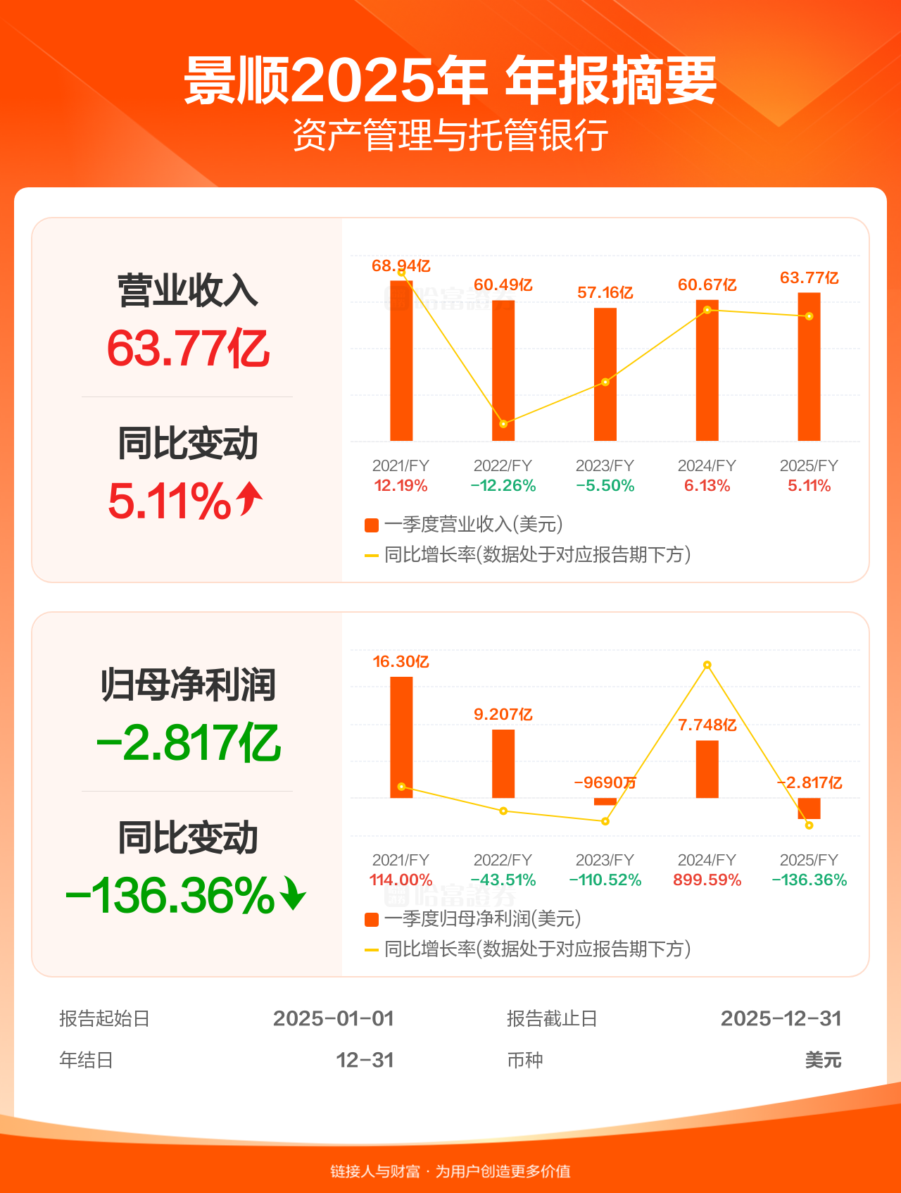 景顺1月27日发布年报业绩,截至2025年12月31日的12个月内,该公司营业收入63.77亿美元,同比增长5.11%;公司权益持有人应占溢利(归母净利润)-2.82亿美元,上年同期7.75亿美元。