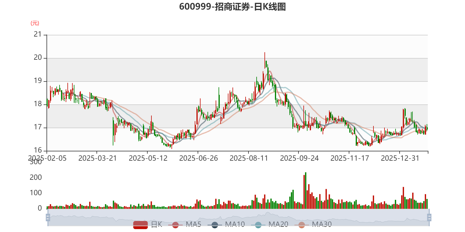 中证智能财讯招商证券(600999)1月27日晚间披露2025年业绩快报,公司实现营业收入249亿元,同比增长19.19%;归母净利润123亿元,同比增长18.43%;扣非净利润122.49亿元,同比增长18.04%;基本每股收益1.35元,加权平均净资产收益率为9.9%。以1月27日收盘价计算,招商证券目前市盈率(TTM)约为11.97倍,市净率(LF)约1.25倍,市销率(TTM)约5.92倍。