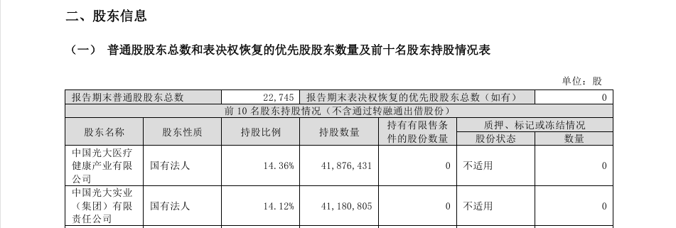 截至2025年第三季度末,光大医疗、光大实业分别为嘉事堂的第一、第二大股东,直接持股比例分别为14.36%、14.12%。