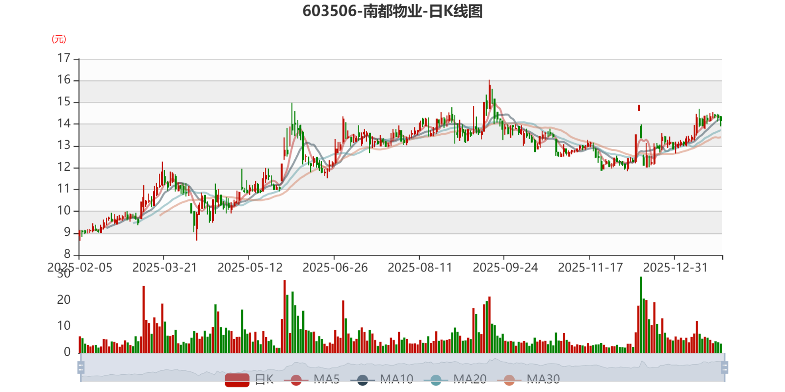 中证智能财讯南都物业(603506)1月27日晚间披露2025年度业绩预告,预计2025年归母净利润9000万元至1.15亿元,同比增长310.86%-424.99%;扣非净利润预计4083.17万元至5500万元,同比增长0-34.7%。以1月27日收盘价计算,南都物业目前市盈率(TTM)约为23.12倍-29.54倍,市净率(LF)约2.13倍,市销率(TTM)约1.45倍。