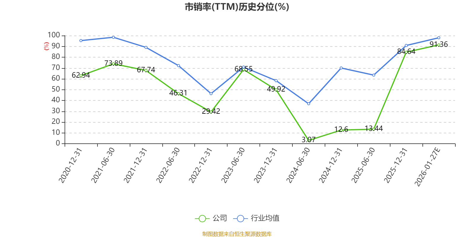文中市盈率和市销率采用TTM方式,即以截至最近一期财报(含预报)12个月的数据计算。市净率采用LF方式,即以最近一期财报数据计算。三者的分位数计算区间均为公司上市以来至最新公告日。