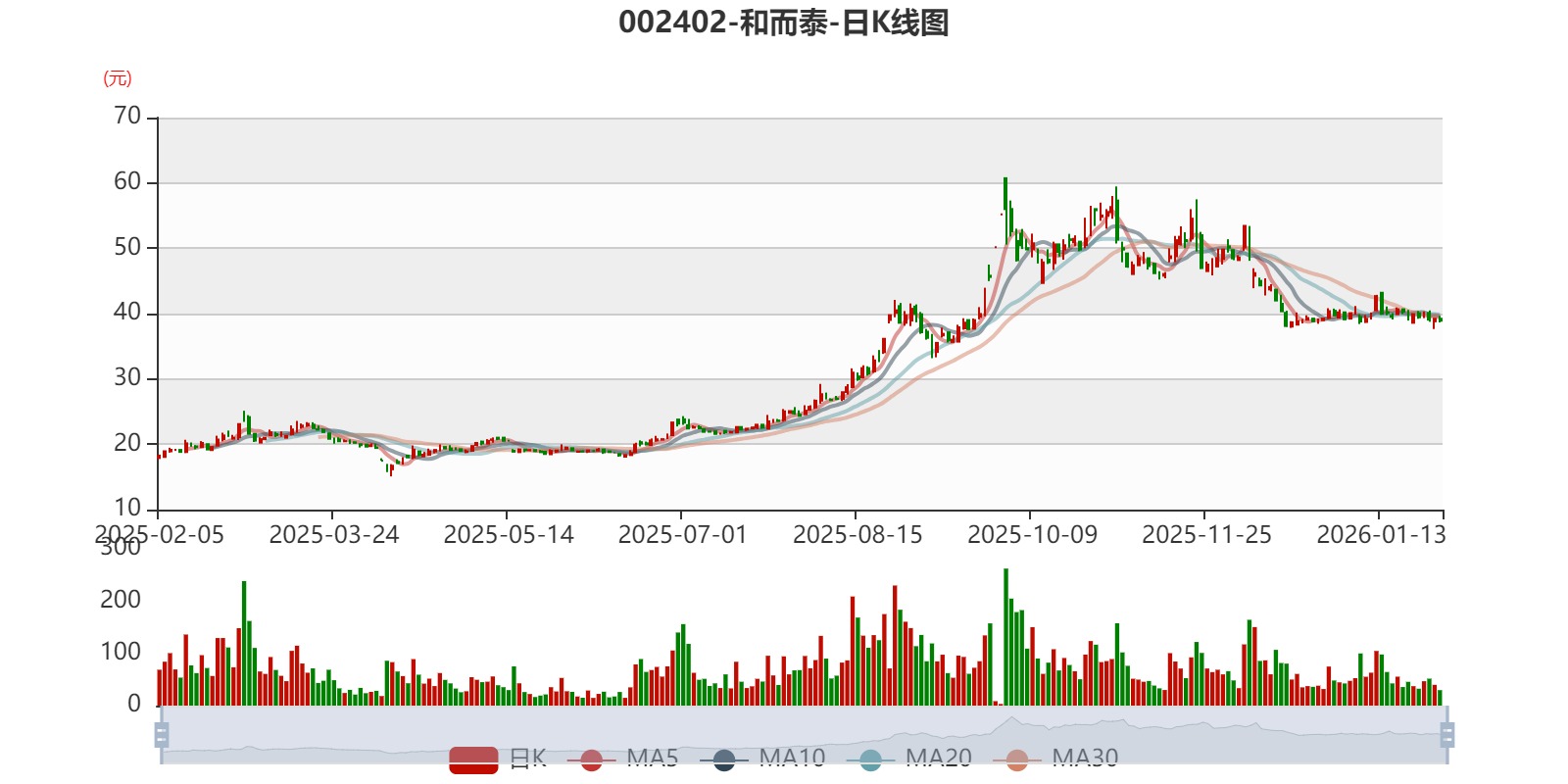 中证智能财讯和而泰(002402)1月28日晚间披露2025年度业绩预告,预计2025年归母净利润6.38亿元至7.29亿元,同比增长75%-100%;扣非净利润预计5.99亿元至6.84亿元,同比增长75%-100%;基本每股收益0.6894元/股-0.7879元/股。以1月28日收盘价计算,和而泰目前市盈率(TTM)约为49.39倍-56.45倍,市净率(LF)约6.85倍,市销率(TTM)约3.3倍。