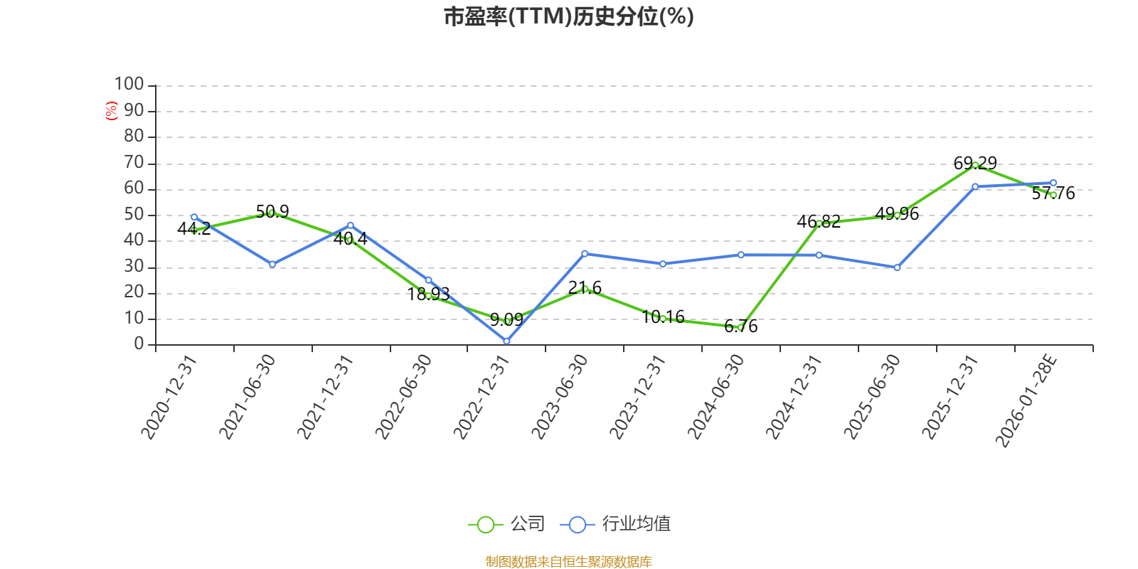 以本次披露业绩预告均值计算,公司近年市盈率(TTM)图如下所示: