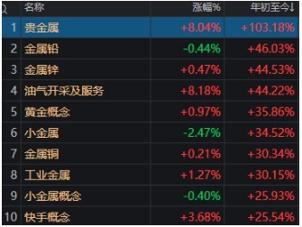 数据显示,“贵金属”板块年内涨幅已超过100%。