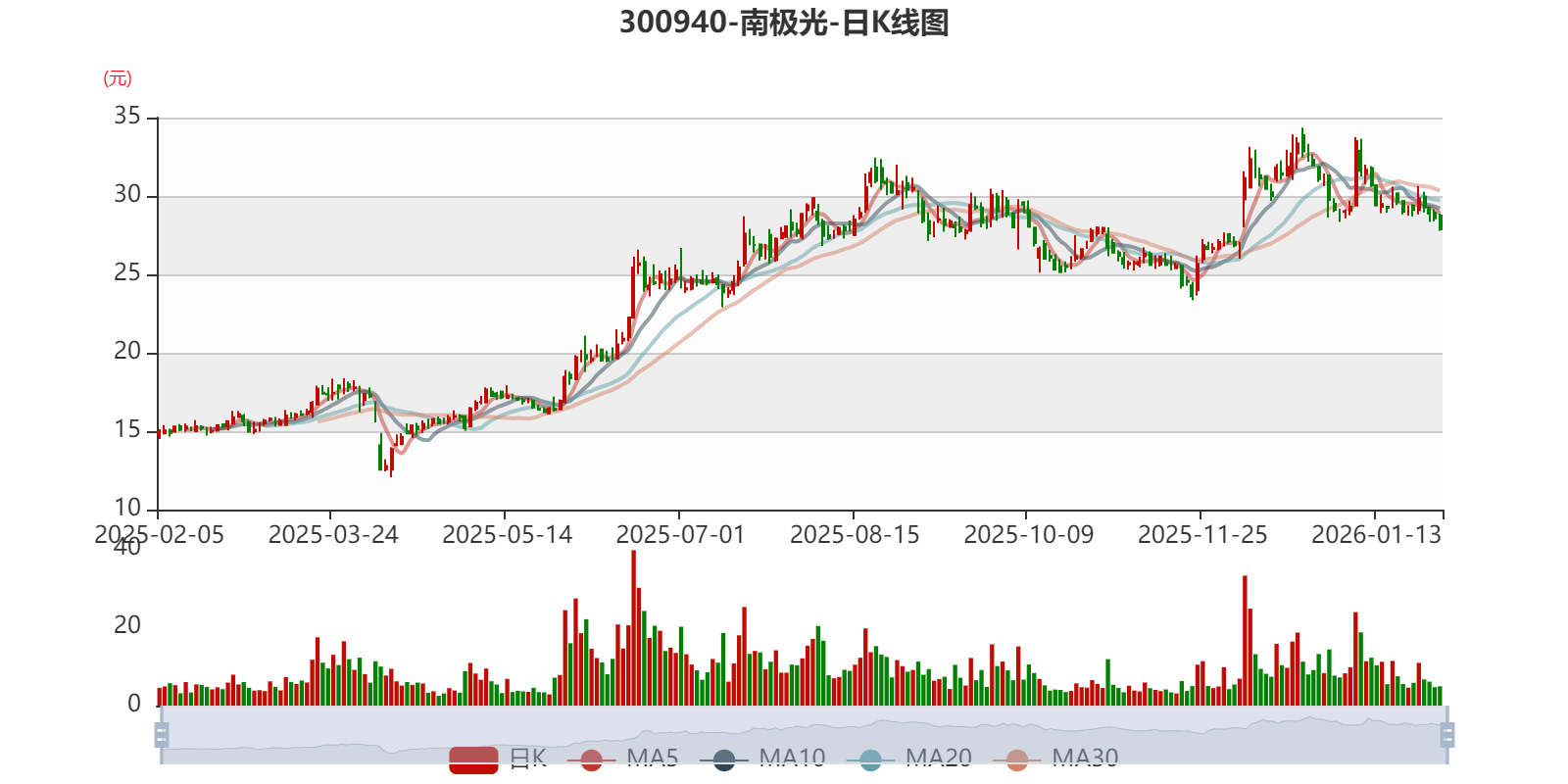 中证智能财讯南极光(300940)1月29日晚间披露2025年度业绩预告,预计2025年归母净利润7600万元至1.1亿元,同比增长268.45%-433.28%;扣非净利润预计7000万元至1.04亿元,同比增长561.97%-883.5%。以1月29日收盘价计算,南极光目前市盈率(TTM)约为56.43倍-81.68倍,市净率(LF)约5.22倍,市销率(TTM)约7.44倍。