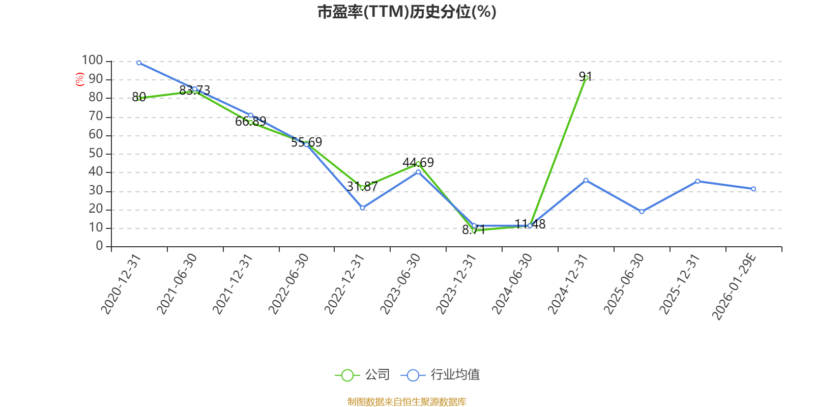 以本次披露业绩预告均值计算,公司近年市盈率(TTM)图如下所示: