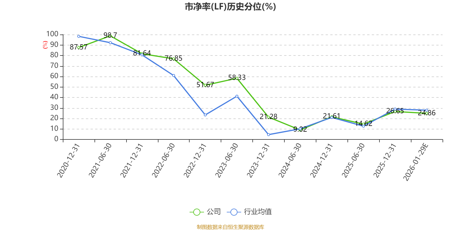 市盈率、市净率为负时,不显示当期分位数,会导致折线图中断。