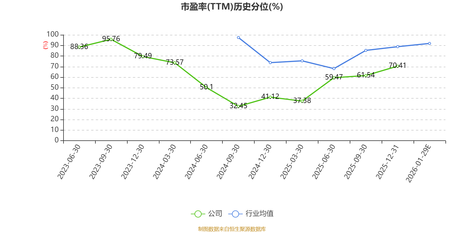 市盈率、市净率为负时,不显示当期分位数,会导致折线图中断。