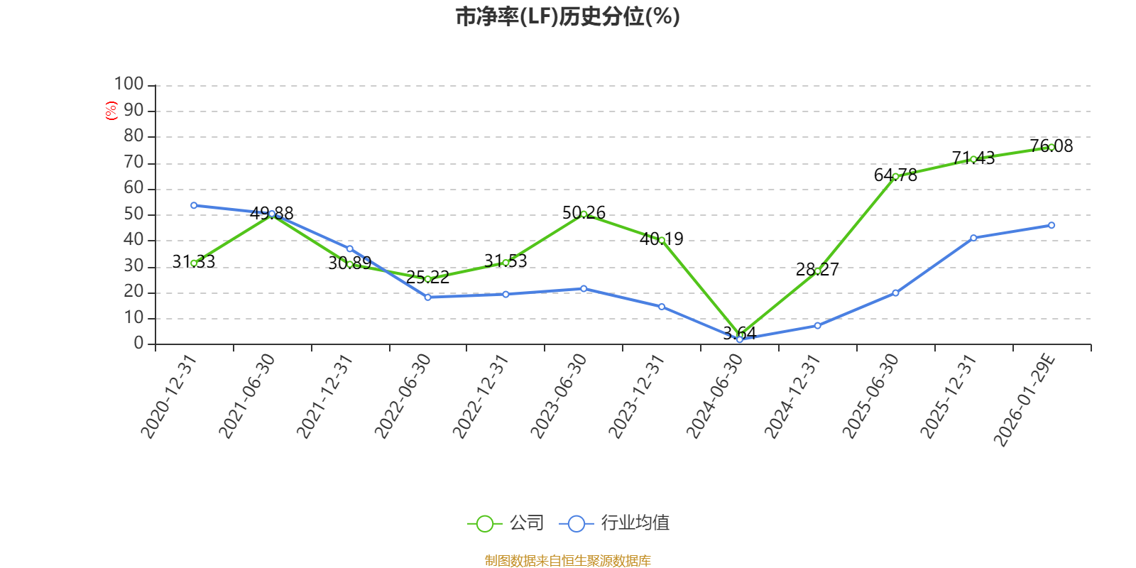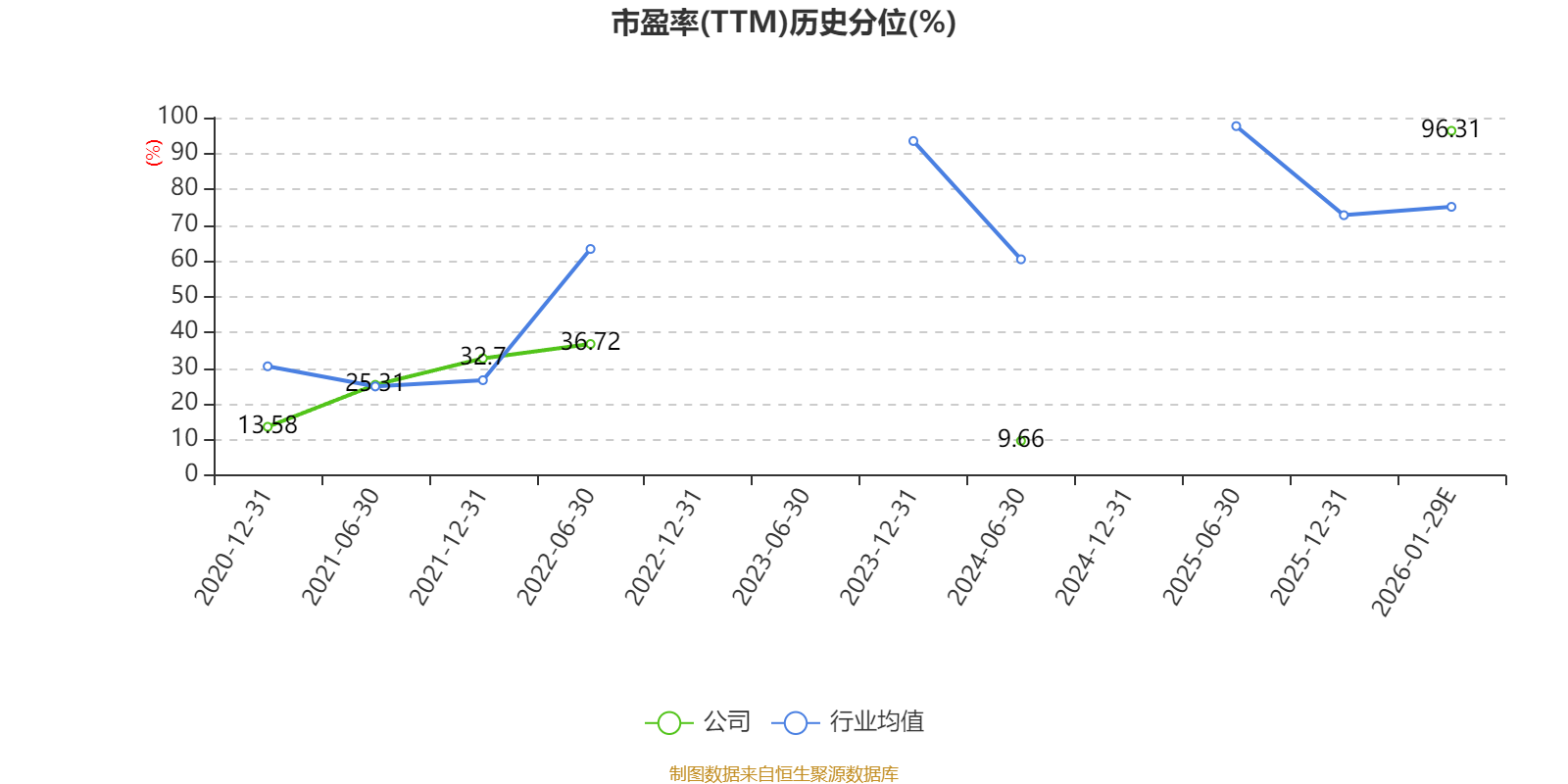 市盈率、市净率为负时,不显示当期分位数,会导致折线图中断。