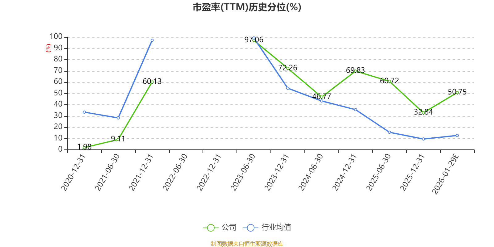 市盈率、市净率为负时,不显示当期分位数,会导致折线图中断。