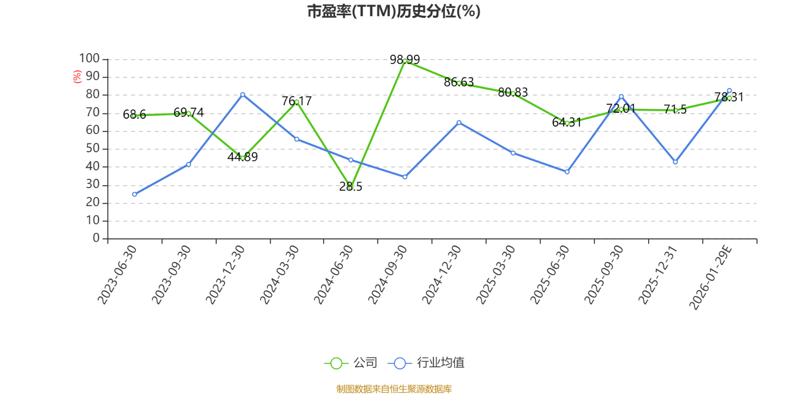市盈率、市净率为负时,不显示当期分位数,会导致折线图中断。