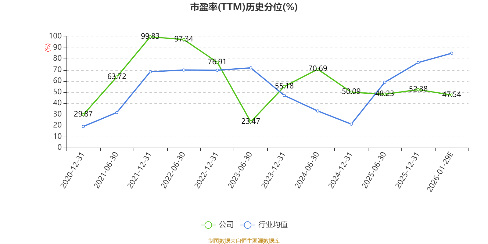 以本次披露业绩预告均值计算,公司近年市盈率(TTM)图如下所示:
