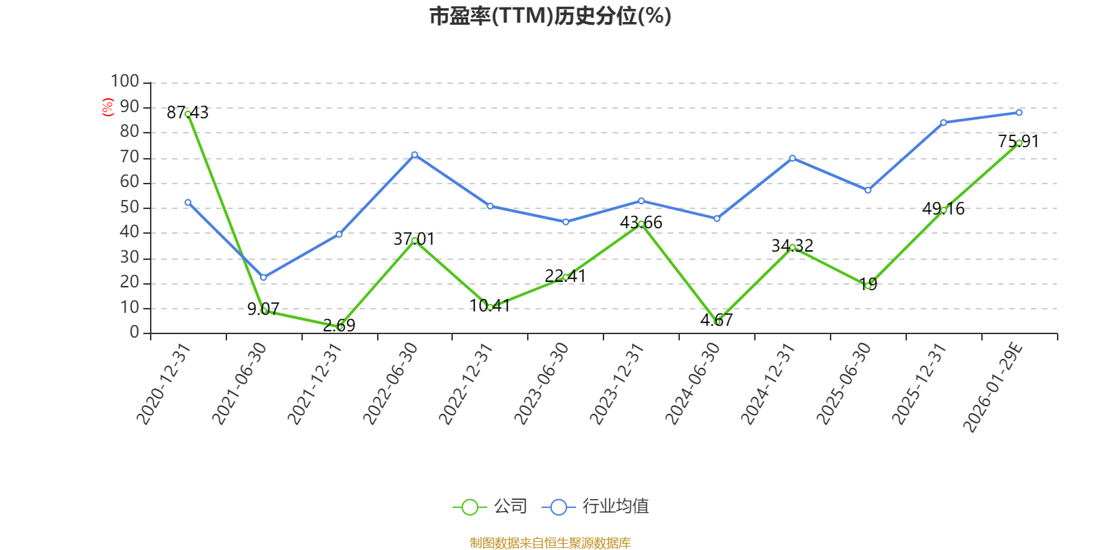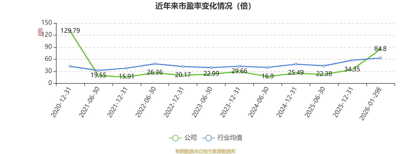 以本次披露业绩预告均值计算,公司近年市盈率(TTM)图如下所示: